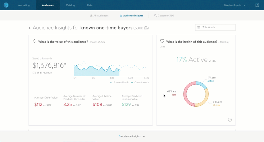 Once you have a pulse on audience health, you can take your insight even further to identify members of your audience with the highest predicted customer lifetime value and understand the products that interest them most.
