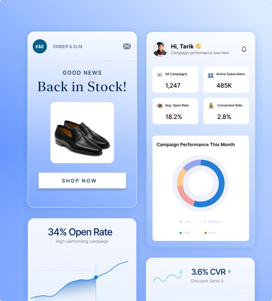 Move from a diagnostic explanation directly into campaign execution across email, and mobile, with additional channels coming soon.